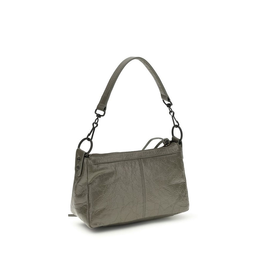 The Le City Moto mini Handbag by Balenciaga is an iconic and versatile accessory, crafted from premium black Arena lambskin with brass hardware. The compact design features a removable and adjustable strap, allowing dual carry options by hand, shoulder, or crossbody. It includes a zip closure with a knotted leather puller, along with a practical front zip pocket. The interior offers one main compartment and a zip pocket, finished with a cotton canvas lining, achieving the perfect balance between style and functionality.