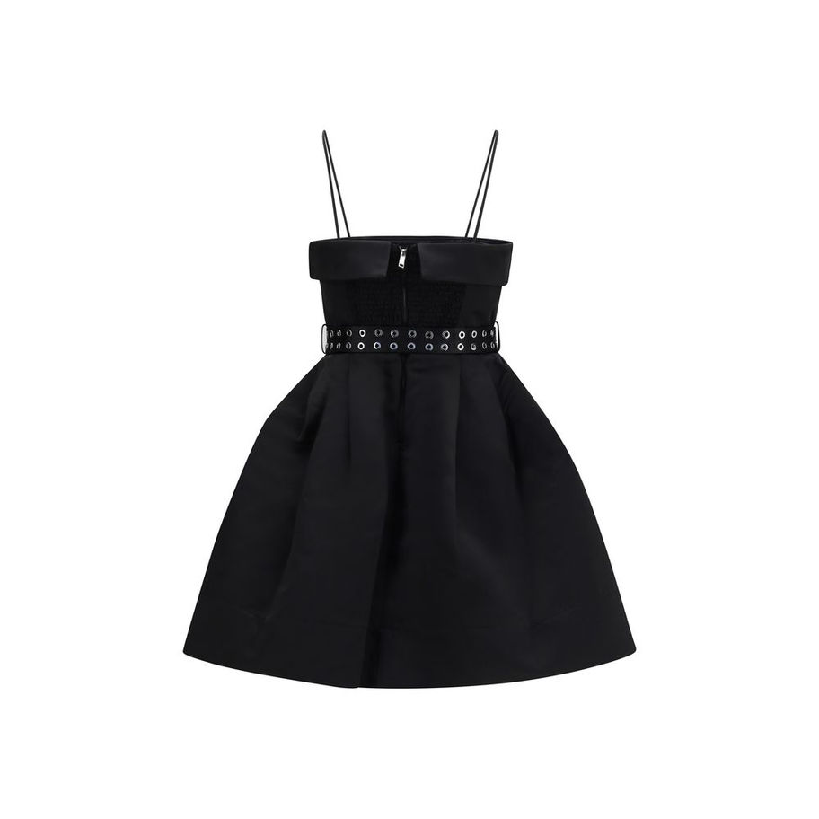 The short satin Dress with a full skirt by Ganni combines elegance and contemporary style in a refined and feminine design. Crafted from satin, it features a straight neckline with thin straps and a zip fastening that ensures a clean, minimal silhouette. The matching belt with loops accentuates the waist, while the very full skirt adds movement and volume, creating a balanced contrast between structure and lightness.