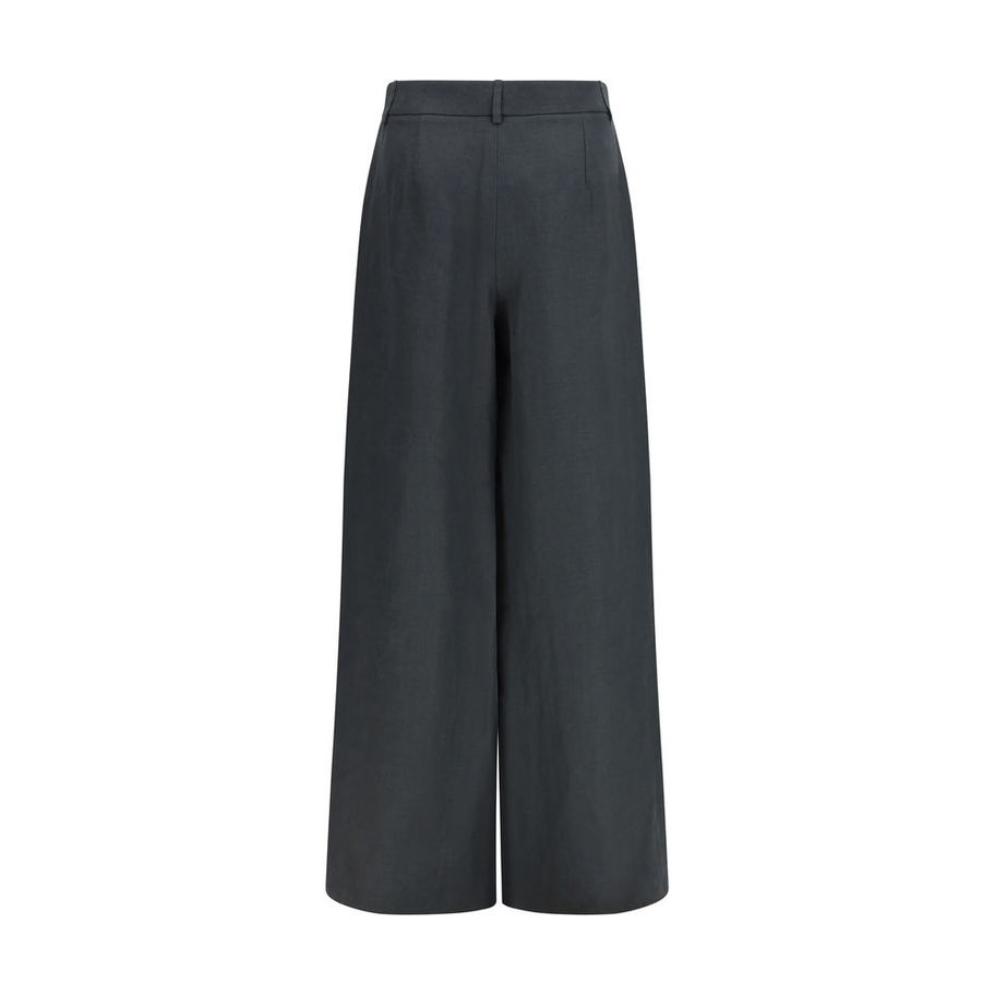 The Linen Pants by Giorgio Armani defined by an essential and refined design with a relaxed fit. The style features a regular waist with belt loops, a front zip fastening with a concealed button, and a straight wide-leg silhouette. The hem is finished with a clean cut, creating a modern and sophisticated look suitable for both casual and more polished outfits.