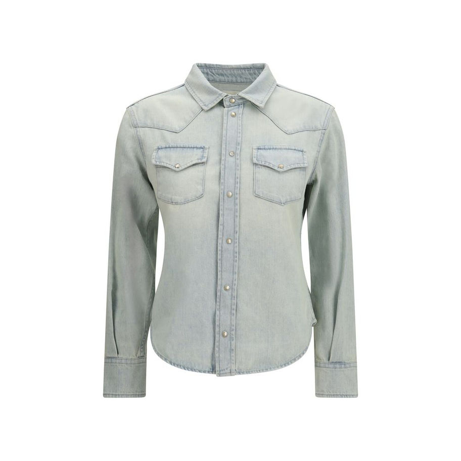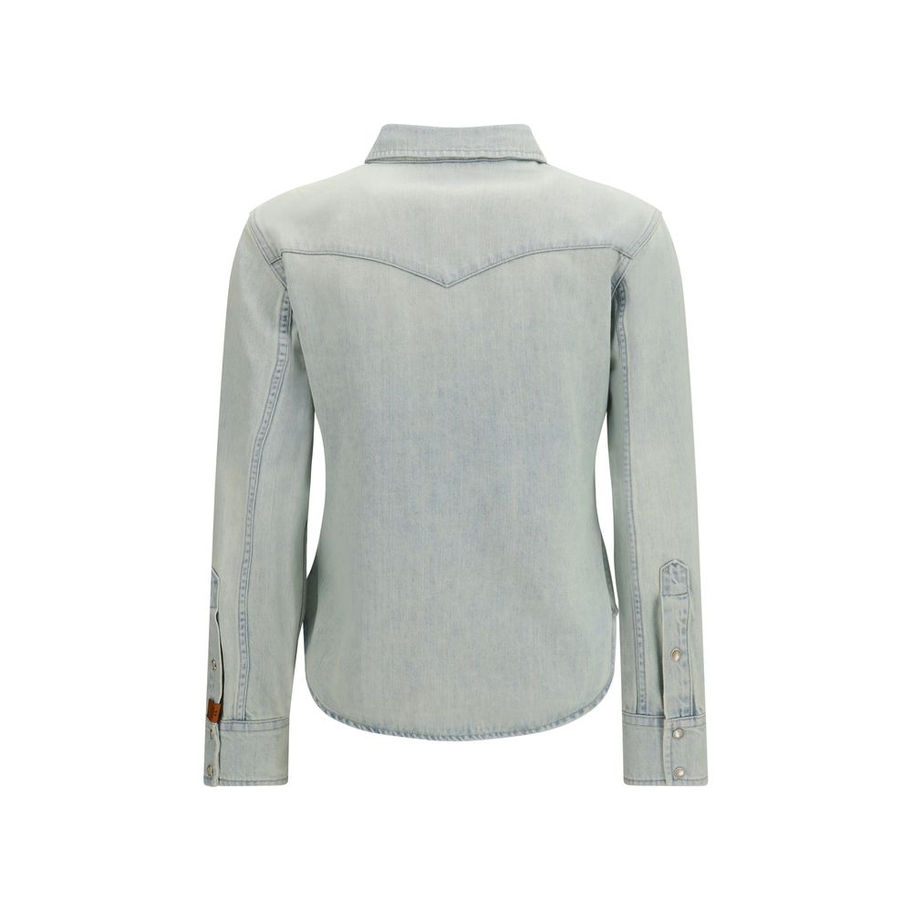 The Western Shirt in lightweight denim by Jacob Cohën features a classic silhouette with long sleeves and a construction inspired by Western heritage. Crafted in lightweight Japanese denim, the texture is enriched by a bleach wash with shading and dirt effects that add depth and character to the garment, while the resin finish adds structure to the fabric surface. The design is defined by a pointed yoke and chest flap pockets with snap buttons, while the real mother-of-pearl and nickel snap buttons complete the piece with a refined detail. The logo label adds a distinctive element to the construction.