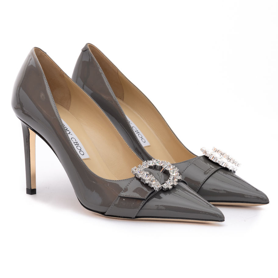 Jimmy Choo Storm Grey Patent Leather Chery 85 Pumps