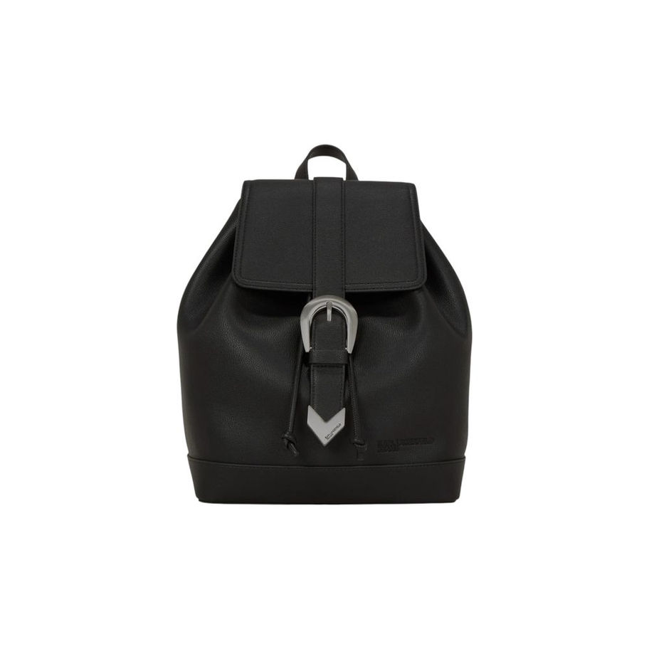 The Karl Lagerfeld Jeans KLJ Western Backpack A4W30141 for women perfectly balances contemporary style with everyday practicality. Crafted entirely from high-quality polyurethane, this backpack features an elegant silhouette and a flap closure adorned with a western-inspired metal buckle, adding a distinctive and sophisticated touch. Its compact yet spacious design provides ample room to organize your essentials, making it ideal for city life, work, or leisure. The Karl Lagerfeld Jeans logo is subtly embossed on the front, ensuring authenticity and iconic style. Adjustable shoulder straps offer comfortable wear, while the top handle allows for easy carrying. This trendy and functional accessory is perfect for every season.