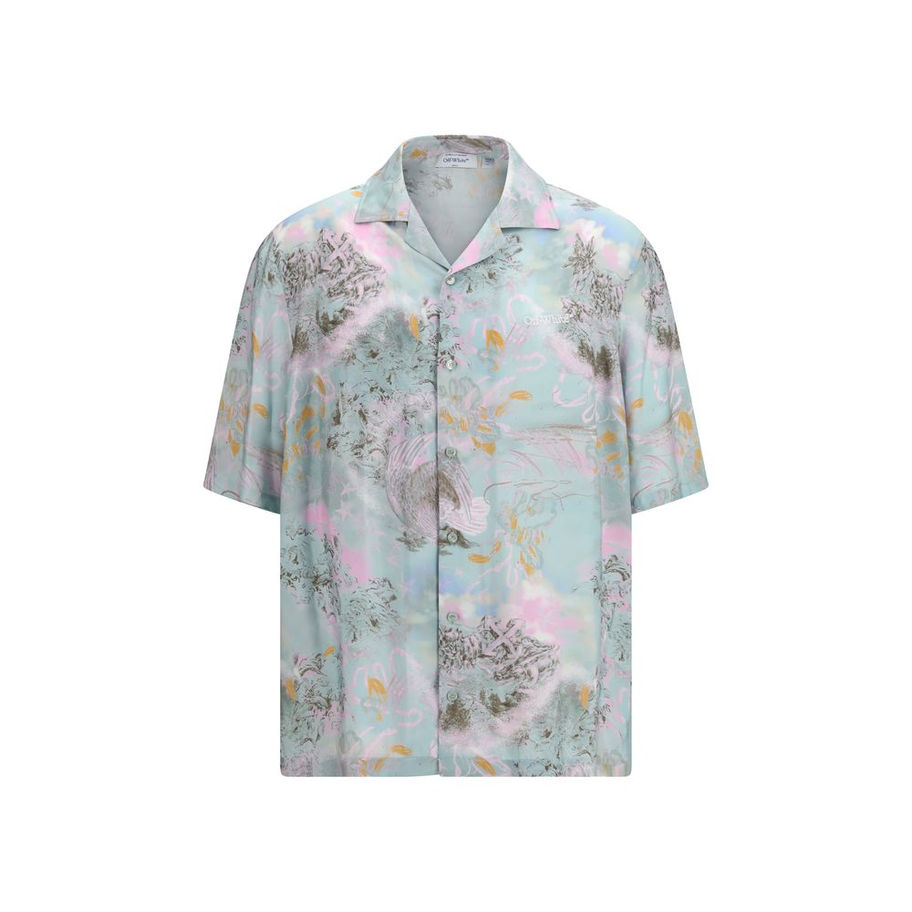 The printed bowling Shirt by Off-White is crafted from lightweight viscose with a soft camp-style collar and short sleeves. The fluid silhouette offers a comfortable fit, while the pastel print adds a touch of movement and elegance. Perfect for summer looks or layering, this shirt combines modernity and sophistication.