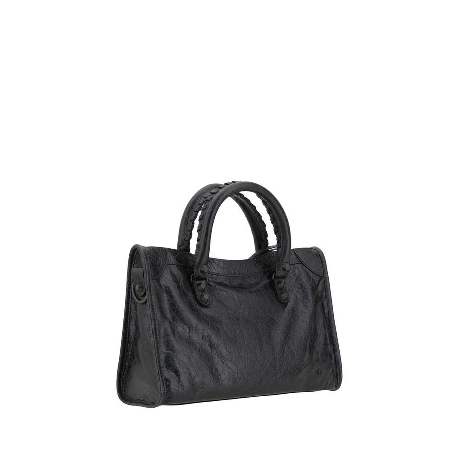 The Le City Small Shoulder Bag by Balenciaga is a high-class item made of fine lambskin leather that combines elegance and functionality. The two hand-woven leather handles lend an artisanal and refined touch, while the adjustable and removable shoulder strap allows it to be worn with versatility, either by hand or on the shoulder. The zippered closure and knotted leather zipper pull add distinctive details, while the front zippered pocket offers convenience for quick access to essentials. Brass trim completes the look, making this bag a luxurious accessory.