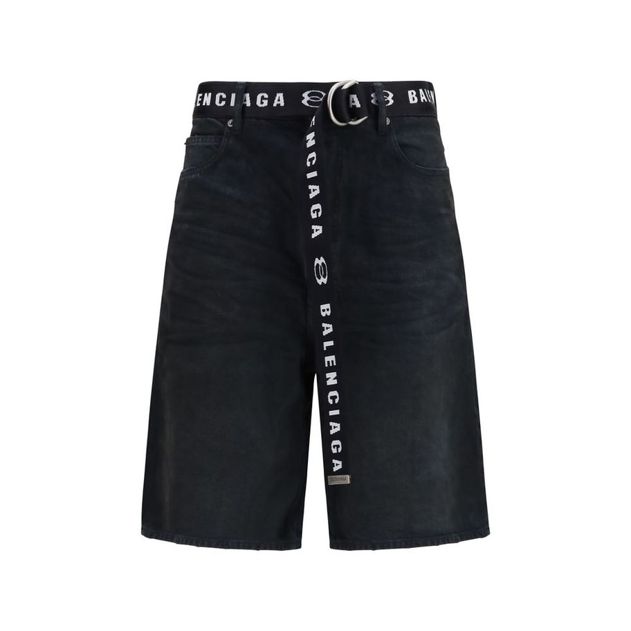 The belted Shorts by Balenciaga stand out for their contemporary and bold design, reinterpreting casual denim with distinctive and modern detailing. Crafted from Japanese cotton denim, they feature a mid-rise silhouette that enhances the style with balance and comfort. Worn-out details add a lived-in urban-inspired touch, while the covered zip fly keeps the design clean and streamlined. The style is completed by an integrated D-ring belt featuring graphic artwork, five belt loops, and a classic five-pocket construction. Balenciaga-engraved flex buttons finish the piece with an iconic and refined signature detail.