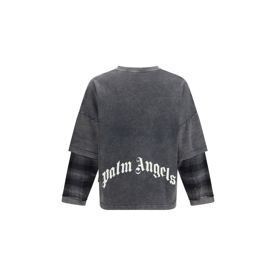 The skull double Long-Sleeved Shirt by Palm Angels features a relaxed silhouette defined by a double-layered construction that enhances its contemporary aesthetic. The design is characterized by layered long sleeves and a Skull graphic print on the front, adding a bold and distinctive touch. The Curved Logo print on the back completes the piece with an iconic element, while the ribbed neckline provides an essential finishing detail.