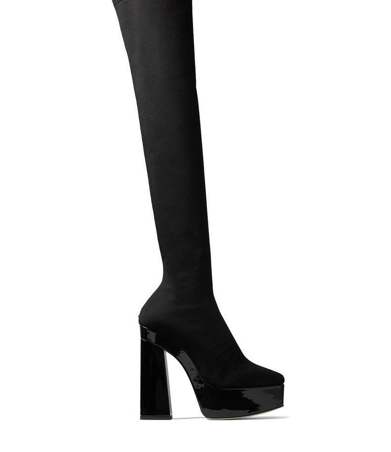 The product with MPN GIOMEOTK140BJWBLACKBLACK and code F86436 fabric in black is a boots designed by Jimmy Choo. It has features like back logo.
