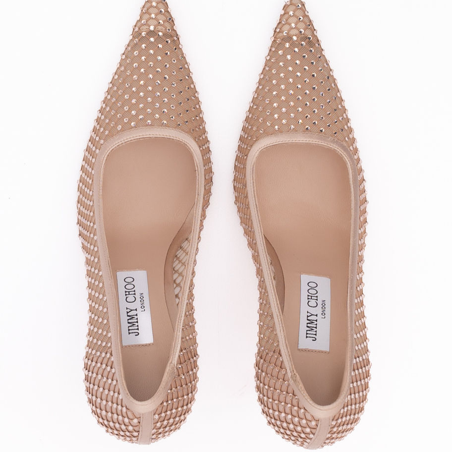 Jimmy Choo Powder Pink Mesh Satin Crystal Ixia 95 Pumps