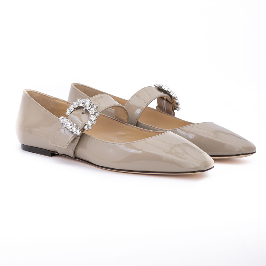 Jimmy Choo Taupe Grey Patent Leather Chery Ballet Flat