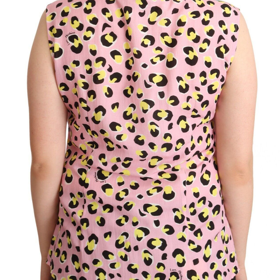 Love Moschino Pink Leopard Print Sleeveless Collared Polo Top