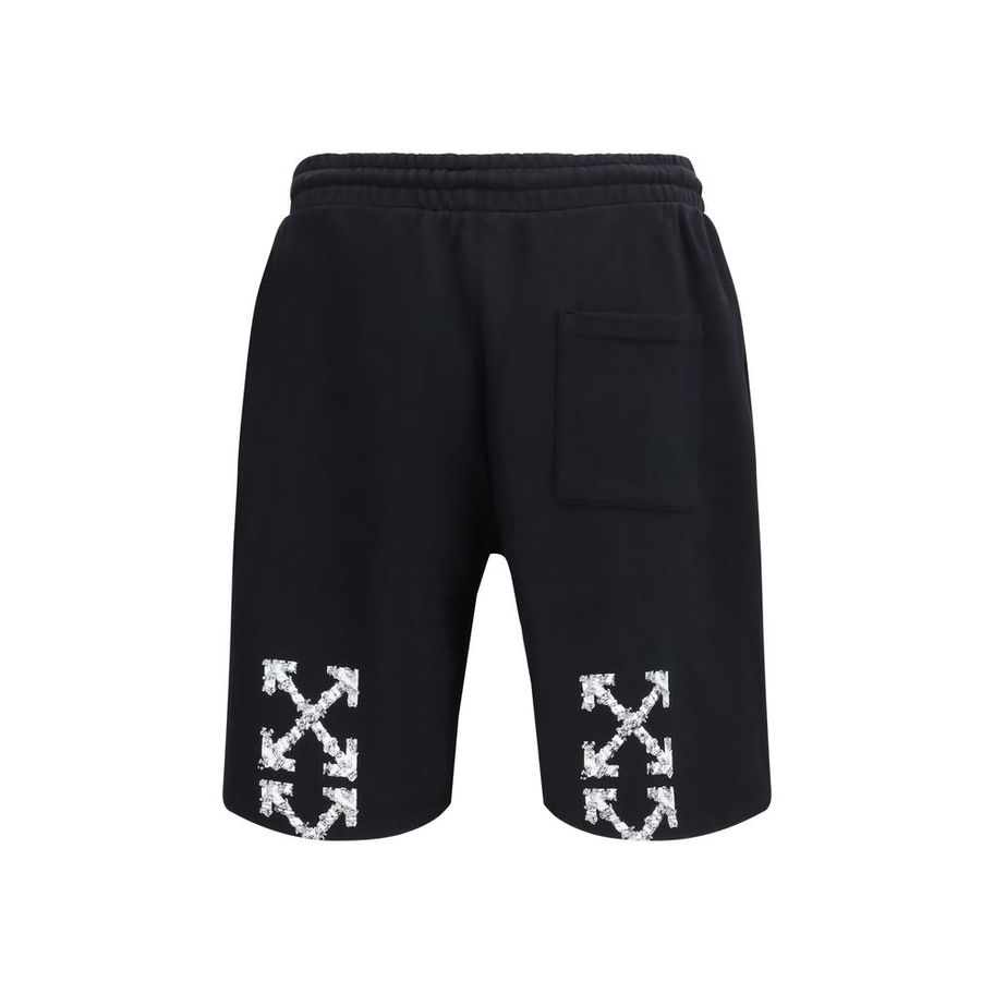 The Heraldic Arrow Bermuda Shorts by Off-White deliver a bold graphic approach to casual wear. Crafted from cotton, they feature an elasticized waistband with drawstring for comfort and ease. Two side pockets and a rear pocket provide functional structure, while contrasting lettering at the front introduces the brand identity. The heraldic arrow print on the back stands as the key visual element. A style designed to balance everyday comfort with strong urban expression.