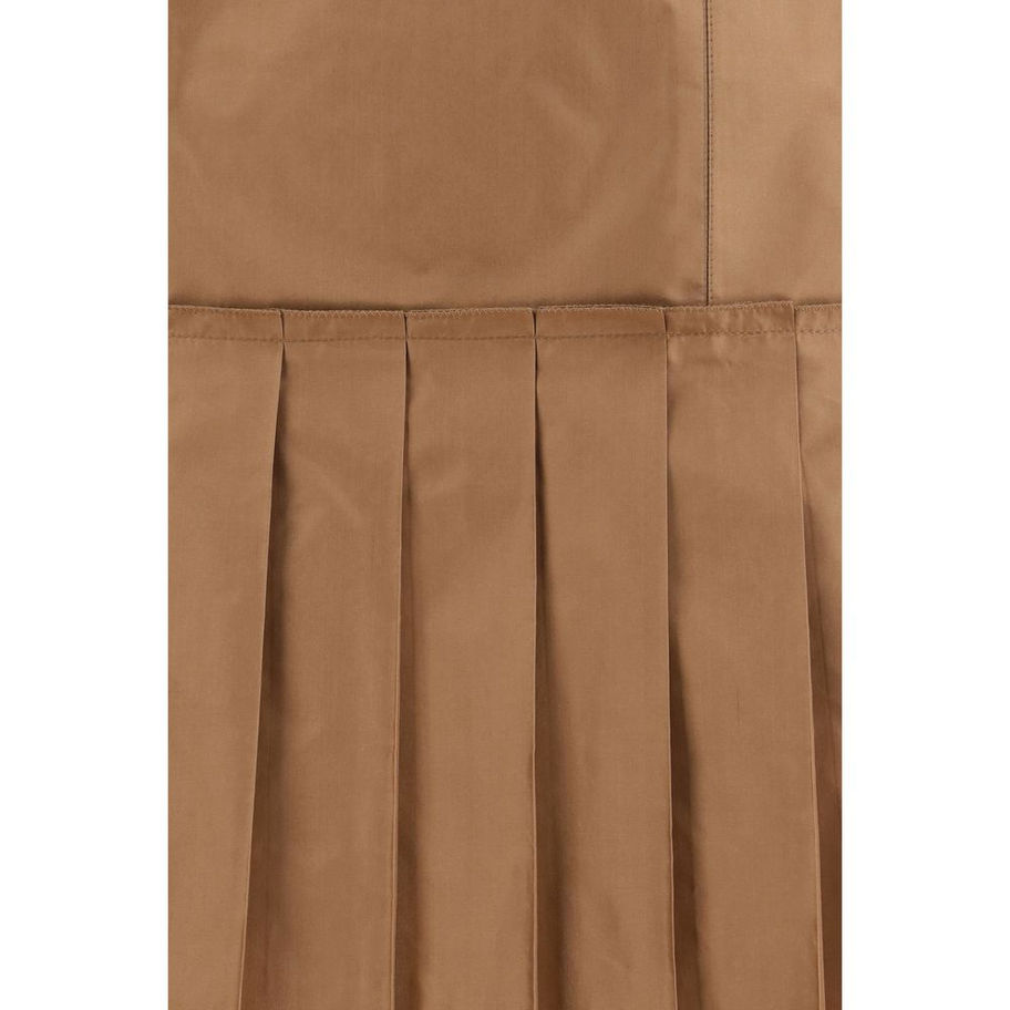 The silk taffeta Skirt by Fendi is a short skirt with a regular waist, featuring a fitted waistband that enhances the silhouette and a pleated skirt that adds volume and movement. Patch pockets on the front offer a functional and modern touch, while the side zip closure ensures a clean finish. Fully lined and crafted from brown silk taffeta, it blends elegance and structure in a refined design.
