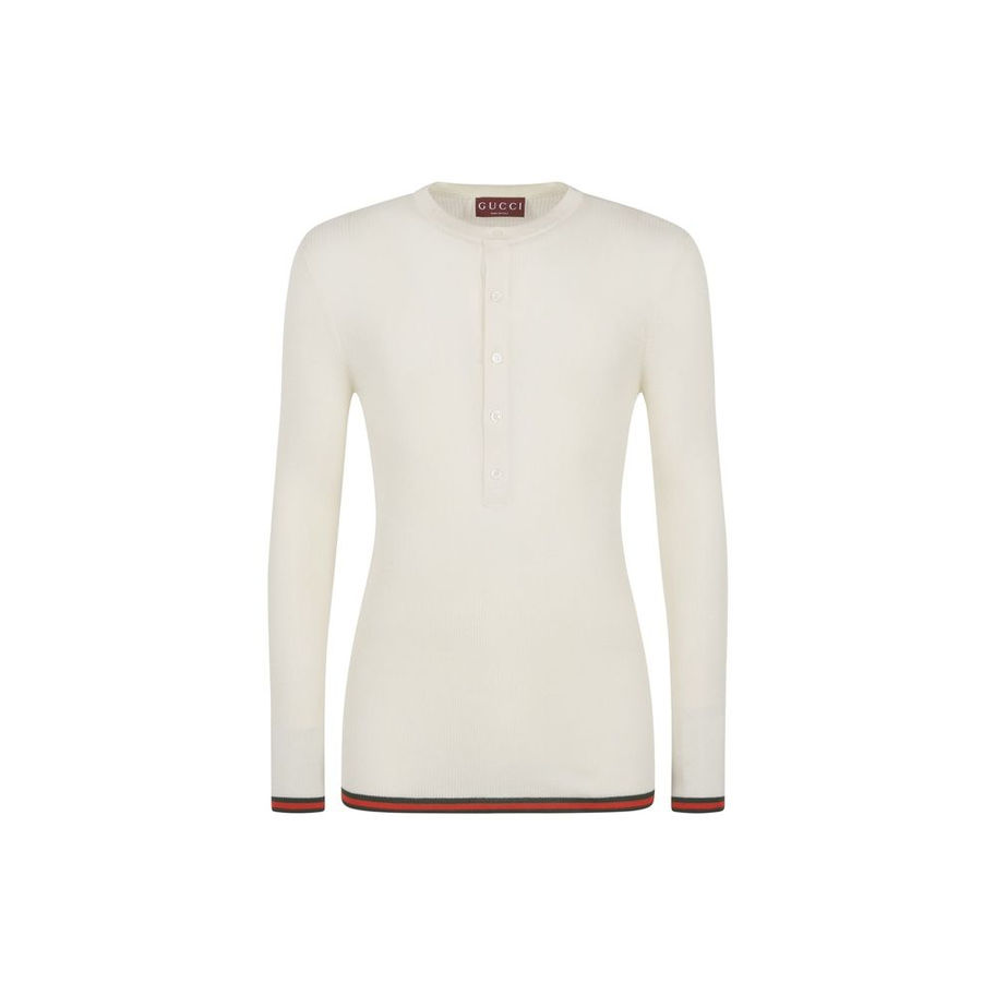 – Composition: 100% Silk – Long sleeves – Small logo detail – Crew neck – Hand wash – Half button closure – Green and red Web ribbed hem and cuffs – Made in Italy – Gender: MEN –
